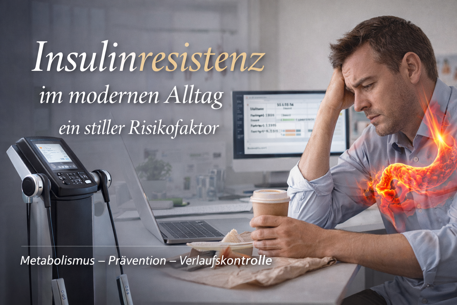 Gerade im modernen Büroalltag mit geringer Alltagsbewegung, hoher mentaler Belastung und unregelmäßiger Ernährung entstehen Rahmenbedingungen, die metabolische Dysregulation begünstigen können.